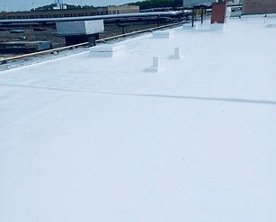 Deuxième application de finition #900 ou #2000 pour obtenir une toiture blanche monolithique, hautement réfléchissante, durable et imperméable aux agents corrosifs atmosphériques